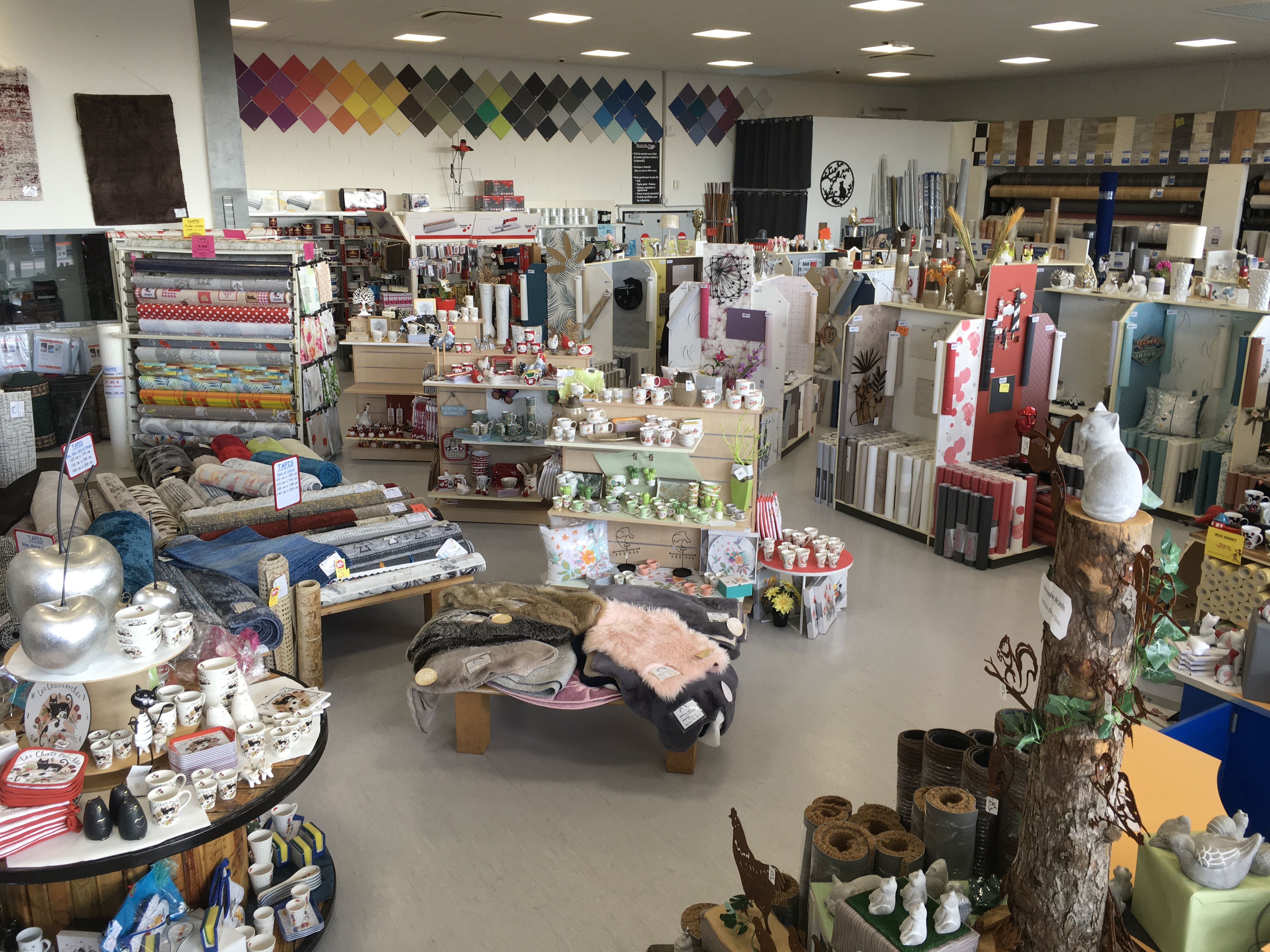 Papier peint , peinture , sols pvc , moquette , stratifié , tapis , objets de décoration...